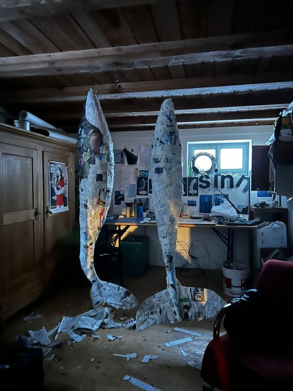 Papier, Kaninchendraht, Uhrgläser, Hybris, Blattgold